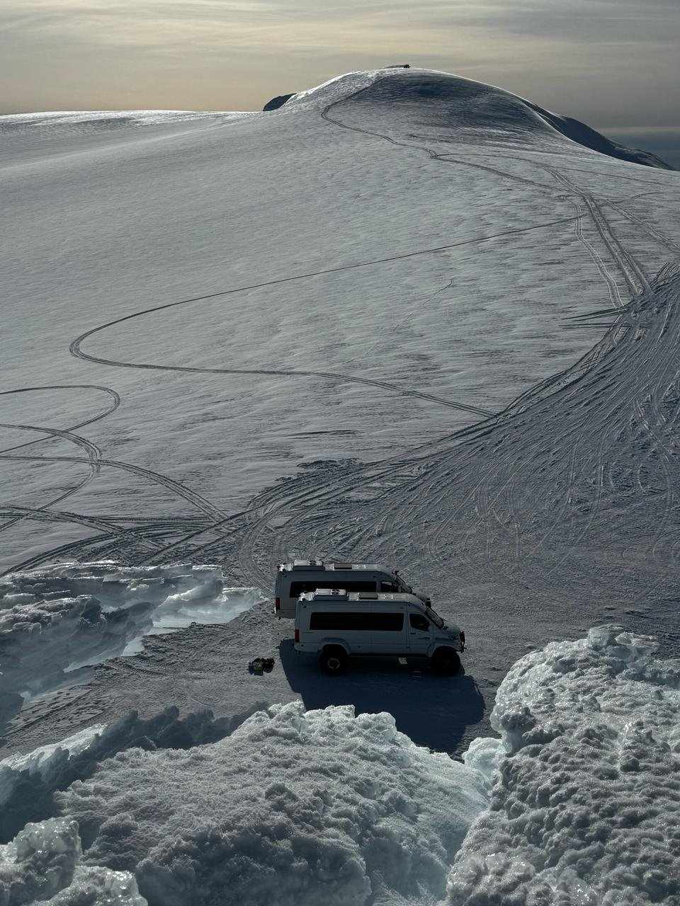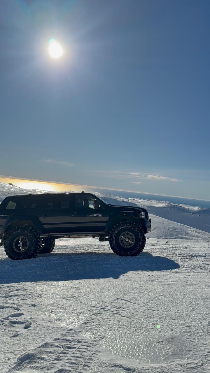 On this tour, we’ll drive up the snowy slopes of Eyjafjallajökull in a specially modified Super Jeep which is built to handle Iceland’s extreme terrain. As we ascend, you’ll be treated to jaw-dropping views over Iceland’s entire south coast — from vast black sand plains and lava fields to the distant Westman Islands, rising out of the Atlantic Ocean.